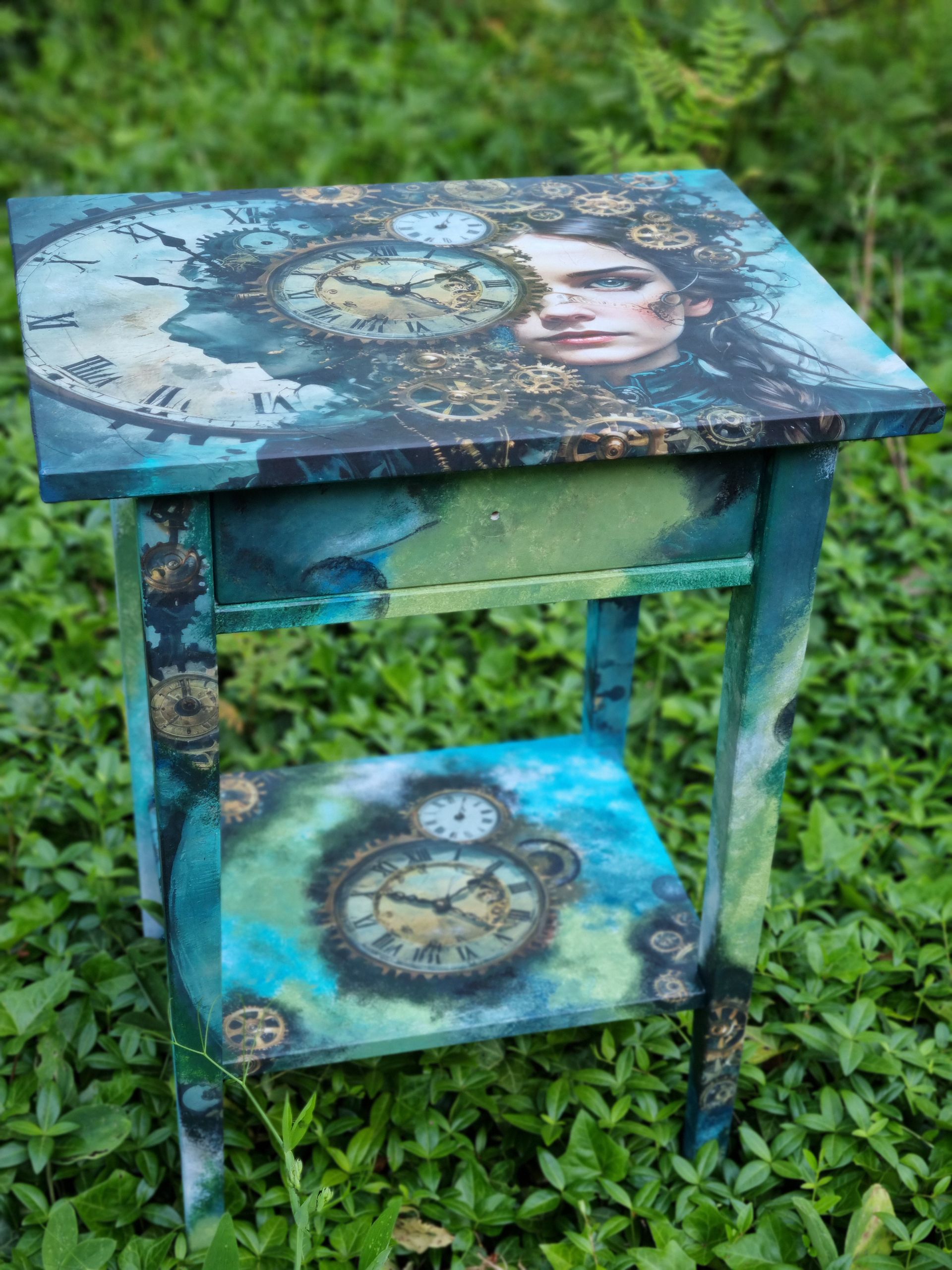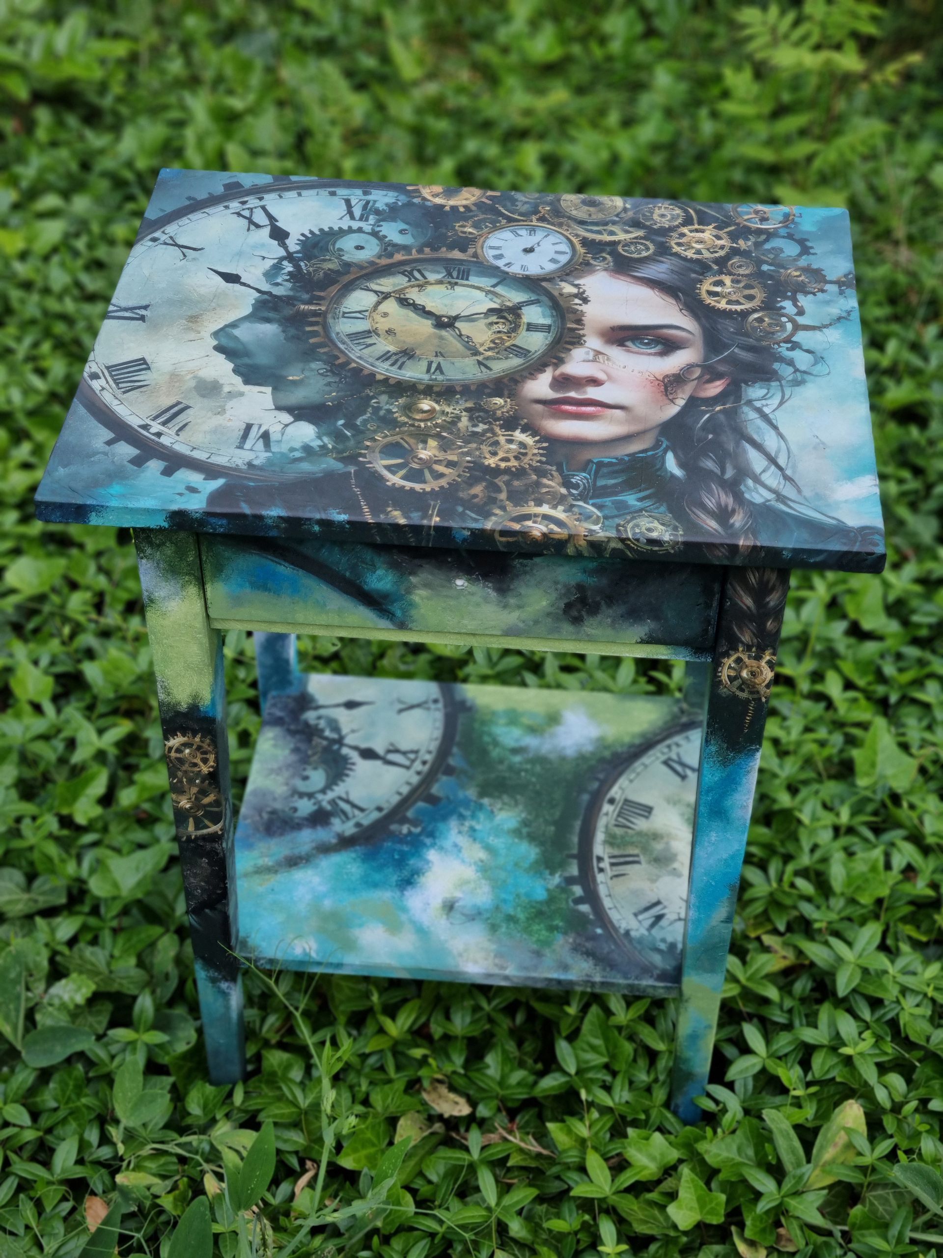 Schubladentischchen überarbeitet mit Decoupagetechnik und Acrylfarbe